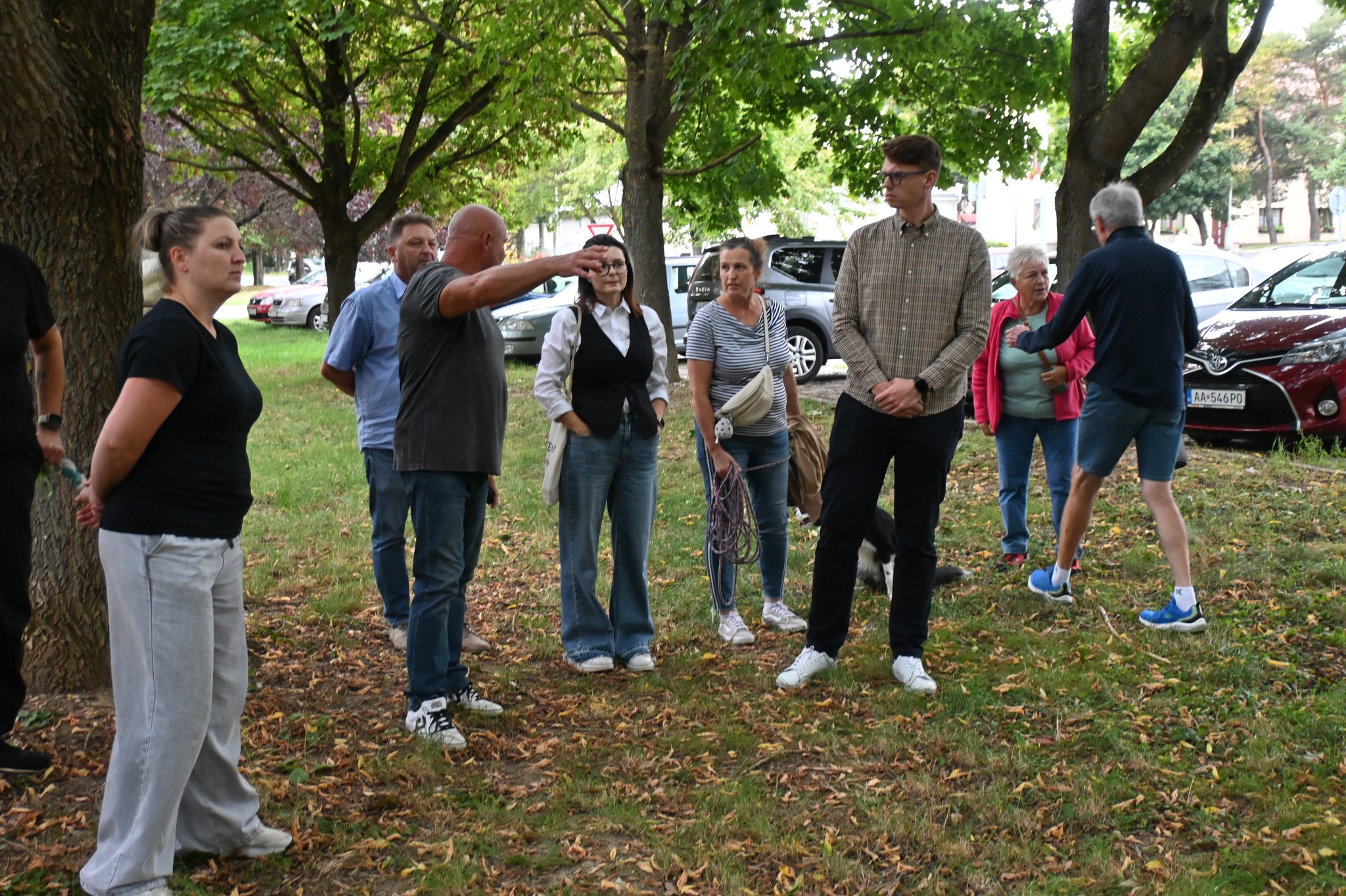 Najskôr sme prítomným predstavili doterajšie kroky mesta v tejto oblasti a rozprúdila sa diskusia medzi občanmi, ktorí sú za vybudovanie ihriska, ale aj tými, ktorí majú obavy a výhrady. Následne sme sa spoločne presunuli priamo na miesto, kde by malo ihrisko vzniknúť – dlhší pás zelene na Mýtnej ulici tiahnuci sa od kotolne smerom ku kruhového objazdu. Tu sme za pomoci odborníkov – pána Černého (výcvik psov) a pána riaditeľa Technických služieb – hovorili o možnostiach technického riešenia, oplotenia aj nastavení prevádzkového poriadku tak, aby boli spokojní aj obyvatelia z blízkeho okolia.