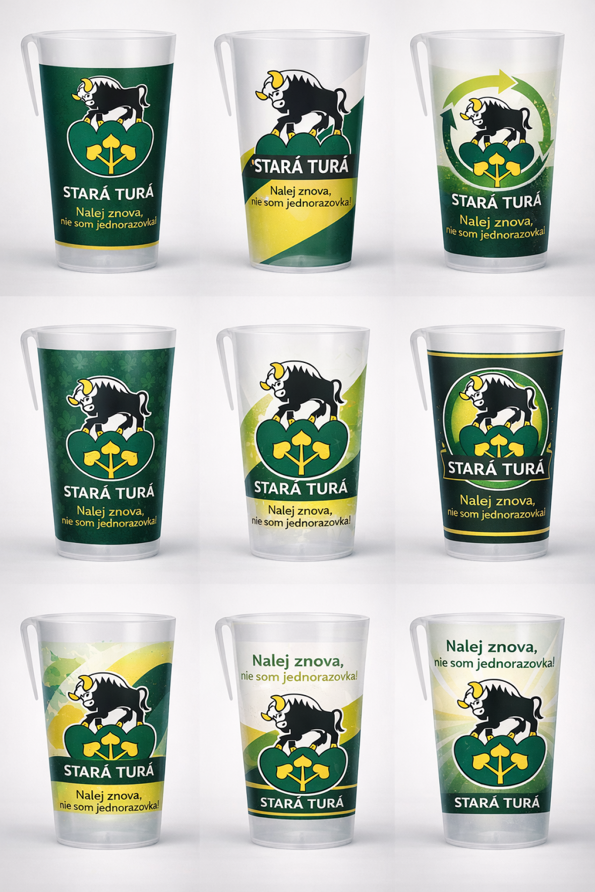 Návrhy vratných pohárov sú iba ilustračné vizualizácie. O dizajne na pohároch mesto rozhodne až po schválení našej žiadosti.
