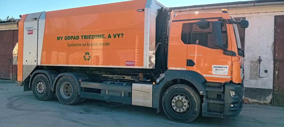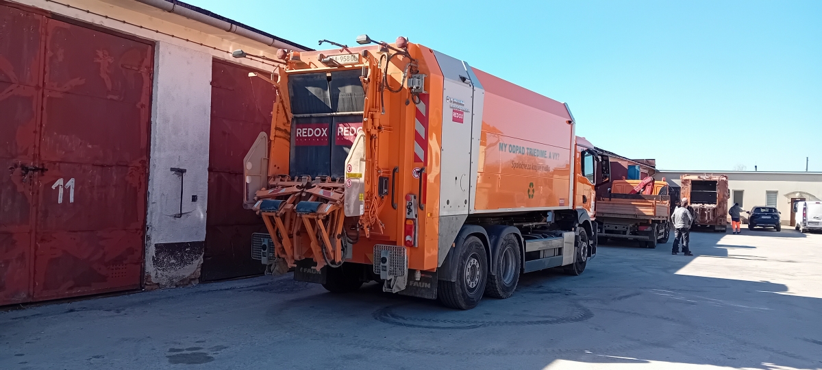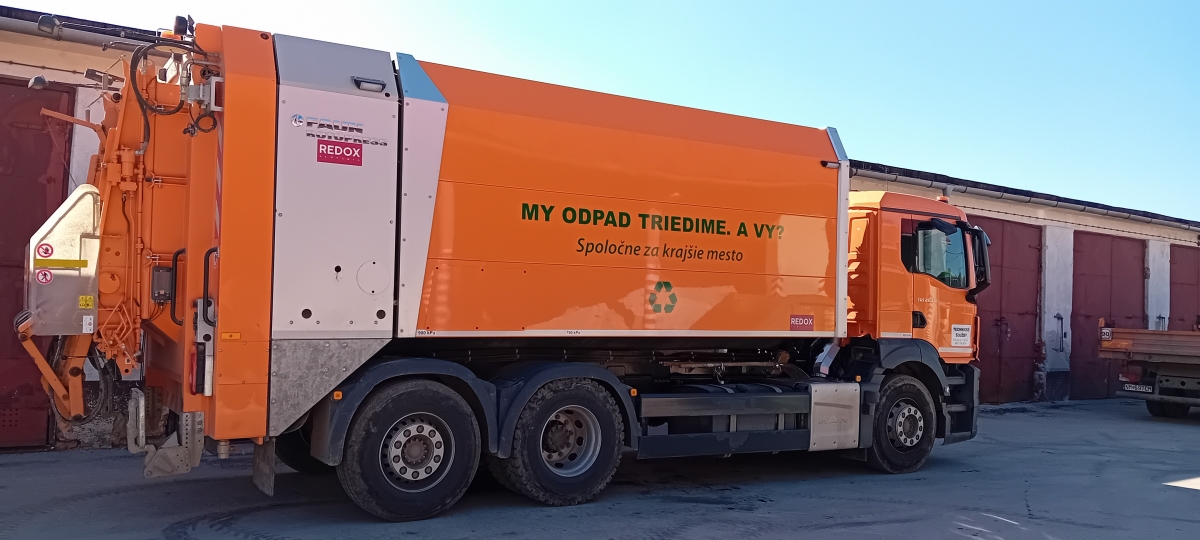 Vozidlo určené na zber, zvoz a prepravu biologicky rozložiteľného kuchynského odpadu, ktorý je následne spracovávaný v mestskej kompostárni. -