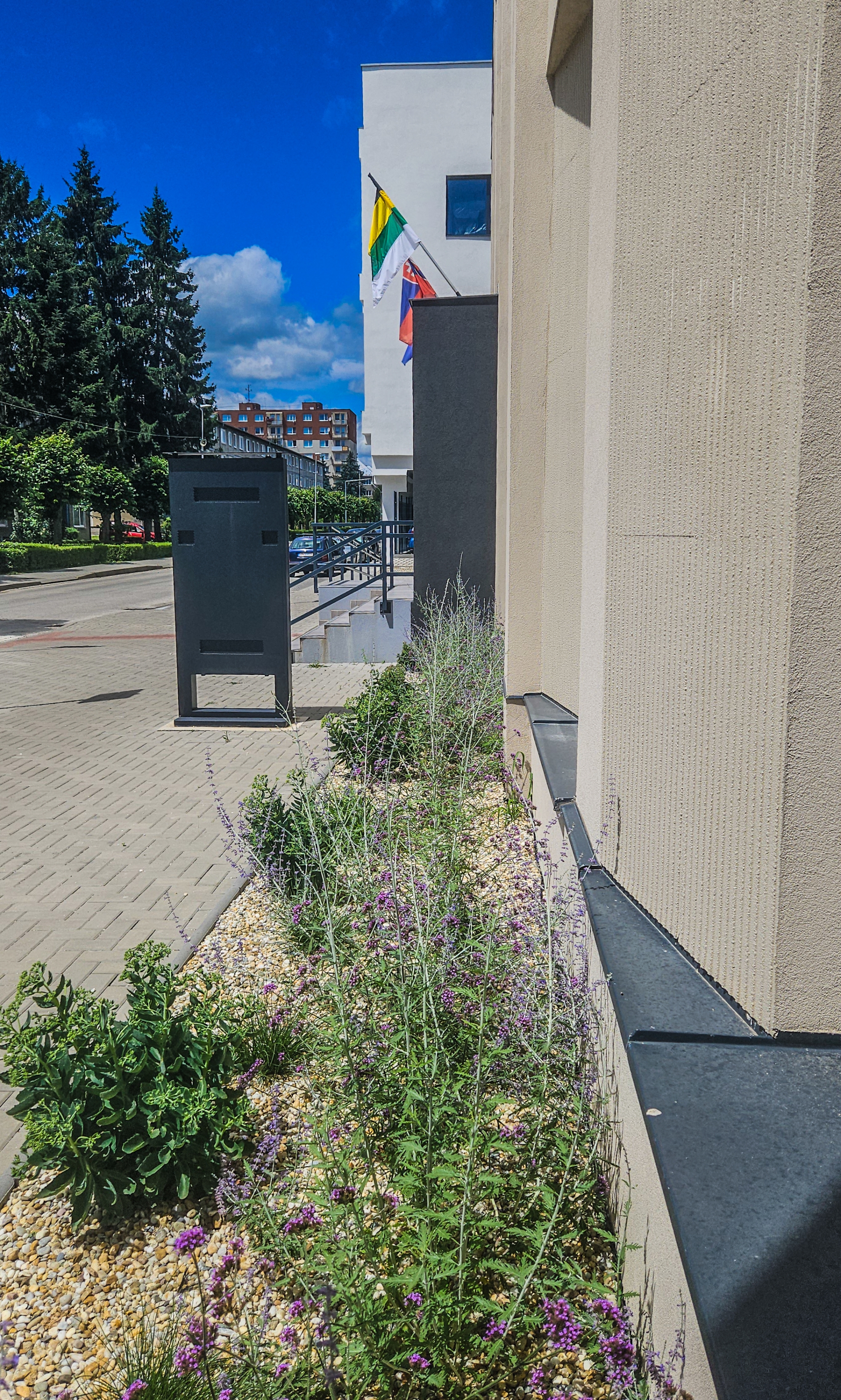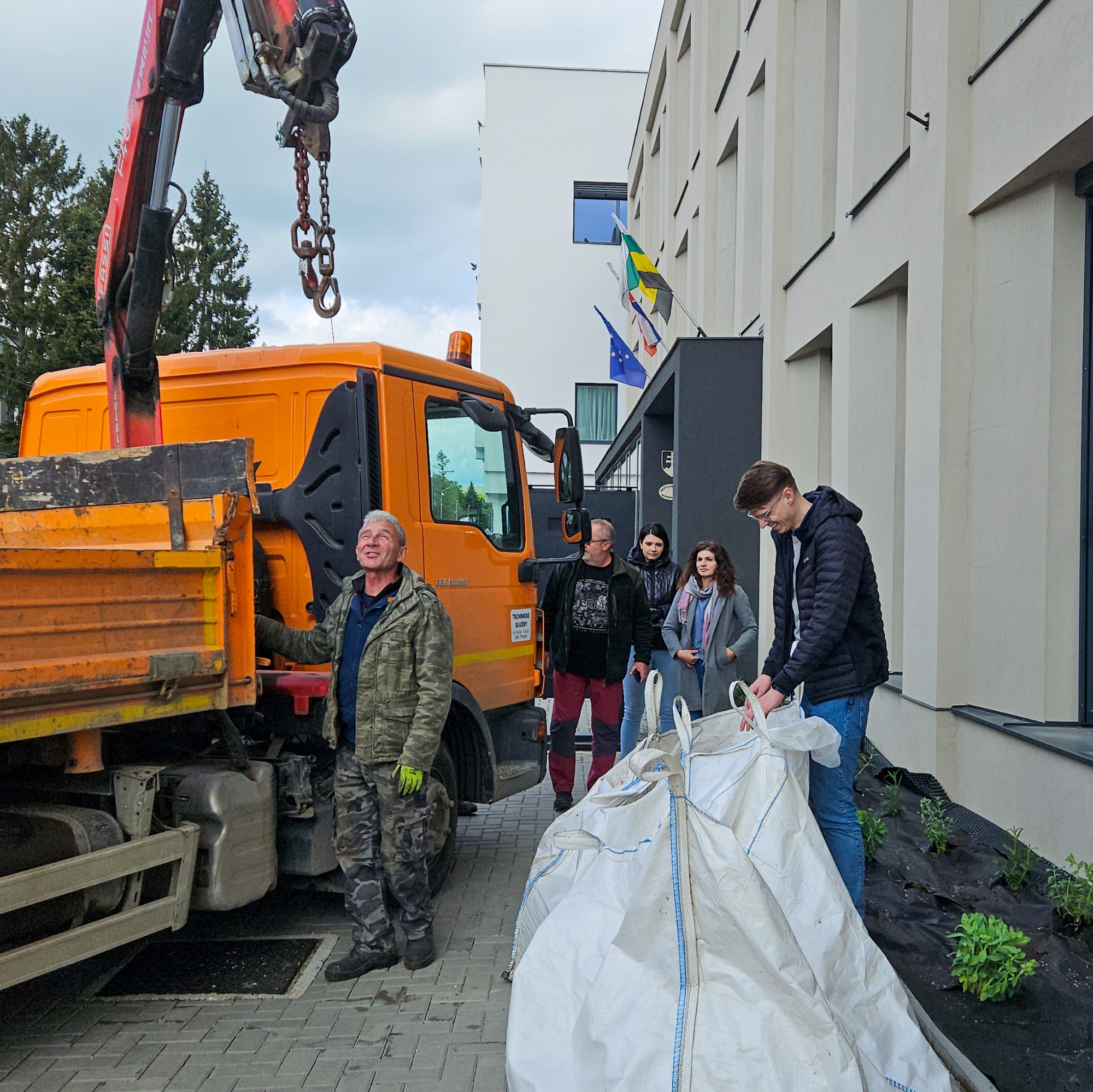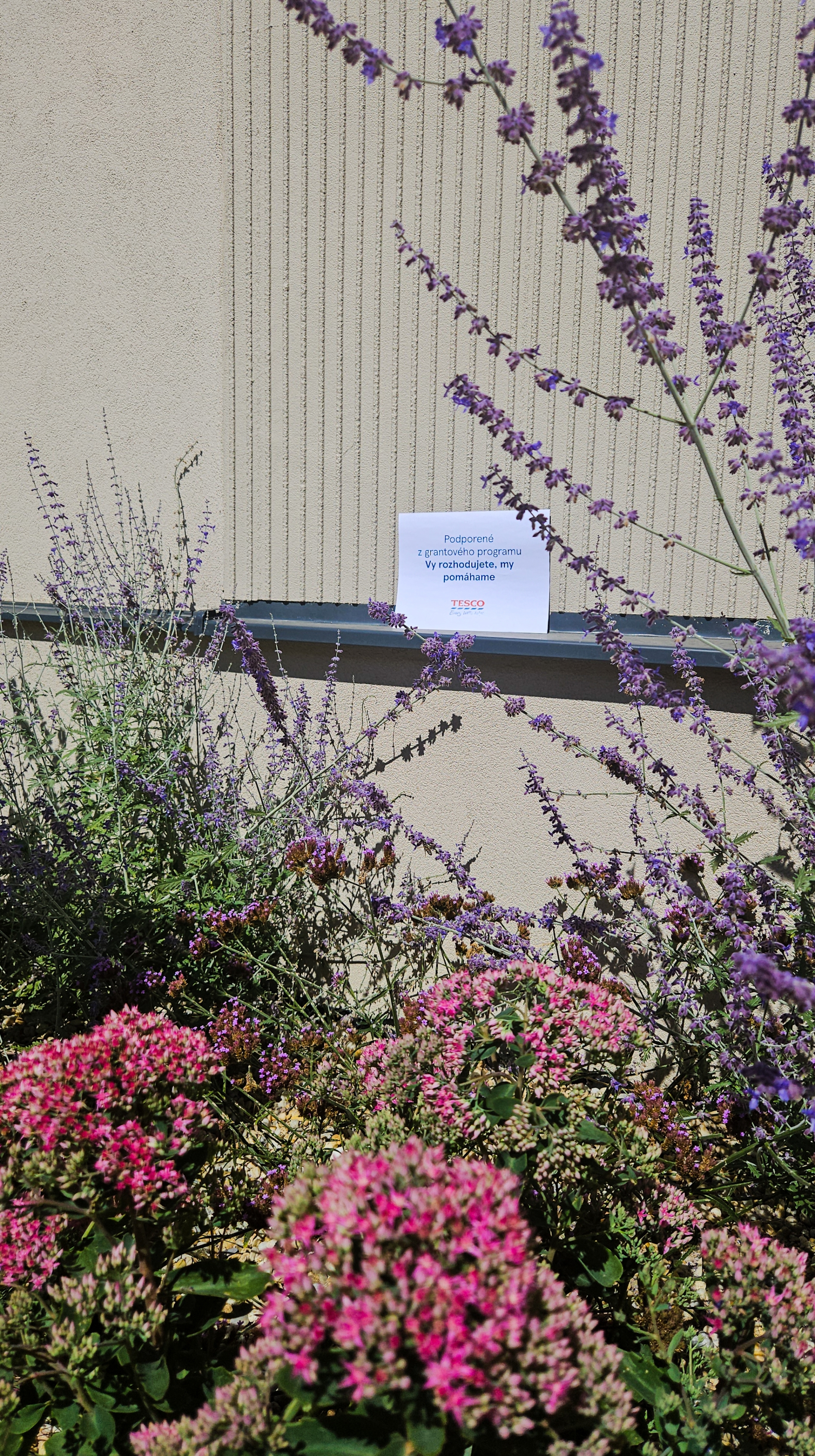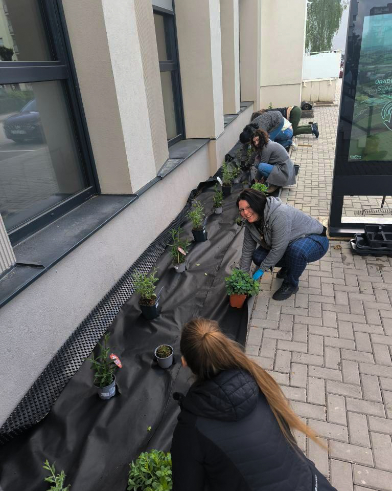 Na jeseň minulého roku sme nápad na projekt ,,Zeleň pred mestským úradom“ prihlásili a podali žiadosť do 14. edície grantového programu Tesco "Vy rozhodujete, my pomáhame." Žiadosť sa stala úspešnou, projekt bol hodnotiacou komisiou zaradený medzi 3 najlepšie v regióne a postúpil do druhého kola. Postup do druhého kola znamenal, že o podpore projektu budú rozhodovať zákazníci OD Tesco. Tí mohli v mesiacoch január a február 2024 hlasovať prostredníctvom žetónov, ktoré dostali za každý zaplatený nákup. Práve vďaka vám, milí zákazníci OD Tesco, sme sa už začiatkom marca vytešovali, že projekt získal najvyšší počet hlasov a stal sa najlepšie hodnoteným v našom regióne. Tesco nadácia Pontis nám za prvé miesto dala finančnú odmenu, vďaka ktorej sme mohli zabezpečiť všetko potrebné pre vznik súvislého, 12 metrov dlhého záhonu, ktorý aktuálne prekvitá a skrášľuje verejné priestranstvo. Zvolili sme moderné, modré, neúnavne kvitnúce trvalky, dorastajúce do výšky až 1 meter. Tieto už aktuálne poskytujú priestor priamo v centre mesta pre život včiel a iných opeľovačov, bez ktorých by život na zemi nebol možný. Mesto aj týmto symbolickým krokom chce robiť osvetu o nevyhnutnosti vytvárania podobných miest i priamo v zaľudnených oblastiach. Do realizácie projektu sa zapojili viaceré organizácie - Technické služby pre nás zabezpečili pracovníkov, ktorí vykonávali zmeny smerujúce k prispôsobeniu spevnených plôch do stavu, aby bolo možné vysádzať kvety - rozobrali zámkovú dlažbu, povrch spevnili betónom, osadili obrubníky, priviezli zeminu i okrasné kamene. Ďalej nákup vybraných druhov rastlín bol v kompetencii zamestnancov mestského úradu, ktorí sa v jedno slnečné ráno, pri príležitosti Dňa Zeme, stretli a dotvorili celé prostredie do požadovaného vzhľadu - natiahli ochrannú fóliu a výsadili trvalky (Perovskie, Železníky, Rozchodníky, okrasné trávy).